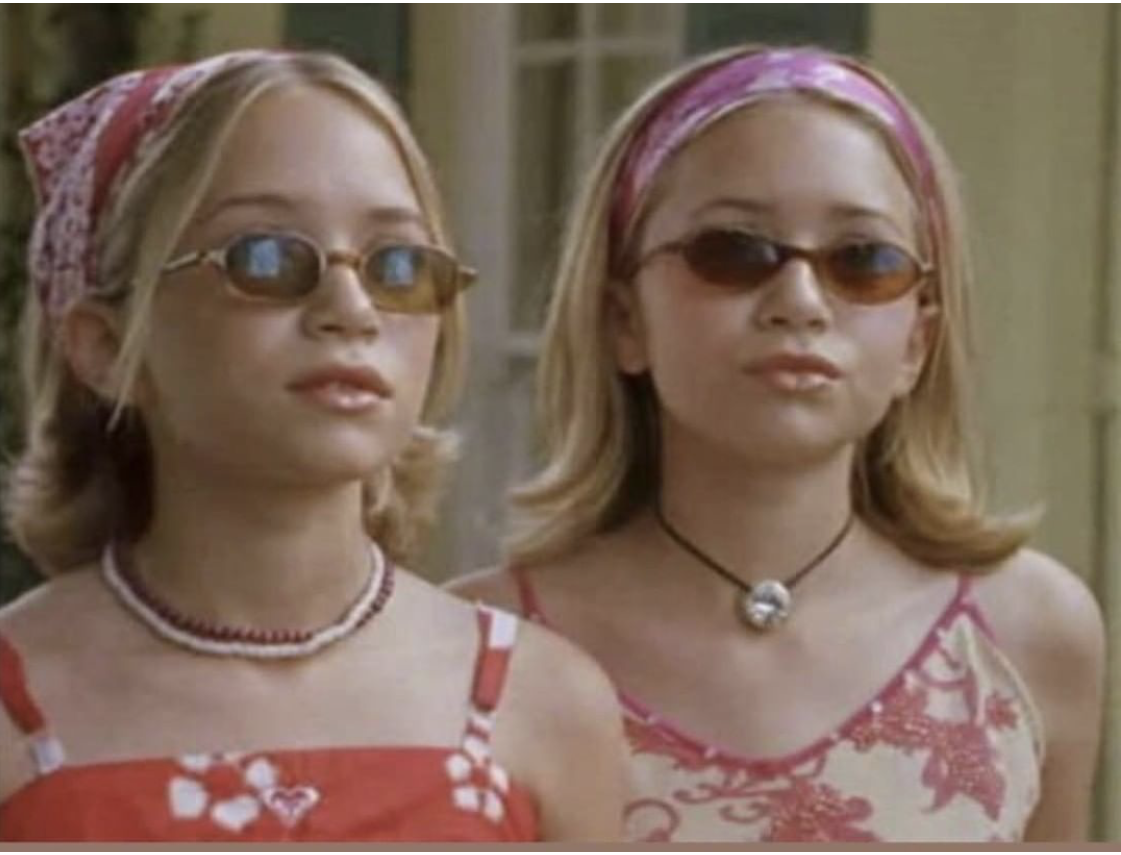 A photo of baby us after a long day of helping our dad thrift shop.